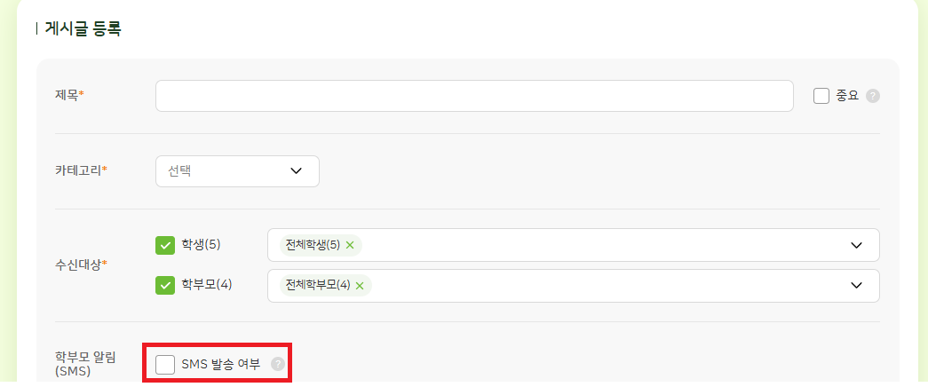 | Summary | 0001658: 학부모 SMS 발송 여부 항목 문구 수정 요청 | ||||