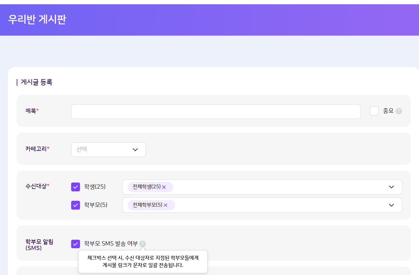 | Steps To Reproduce | 1. 교사 로그인 2. 우리반 게시판 > 등록 | ||||
