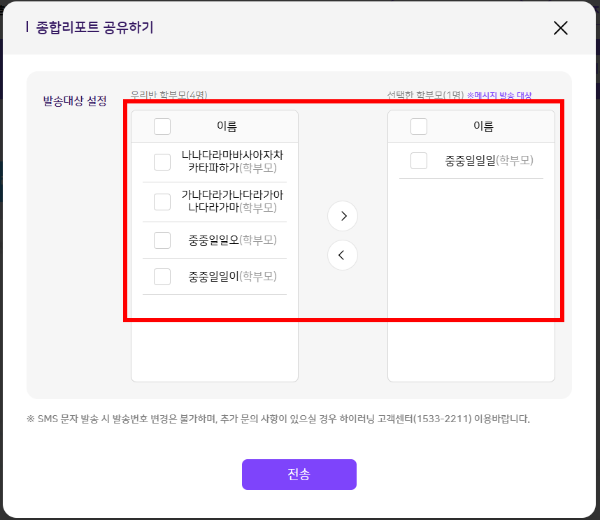 | Description | 종합리포트 공유하기 팝업의 학부모 이름이 마스킹 되지 않고 평문으로 노출되고 있습니다. 해당 팝업에서도 이름이 마스킹 처리되어야 하는지 문의 드립니다. | ||||