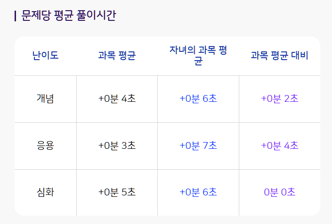 | Description | 학부모 : 종합 리포트 > 문제당 평균 풀이 시간 내 문구 수정 요청(PC) *기대결과 : 나의 과목 평균 -> 학생의 과목 평균 | ||||