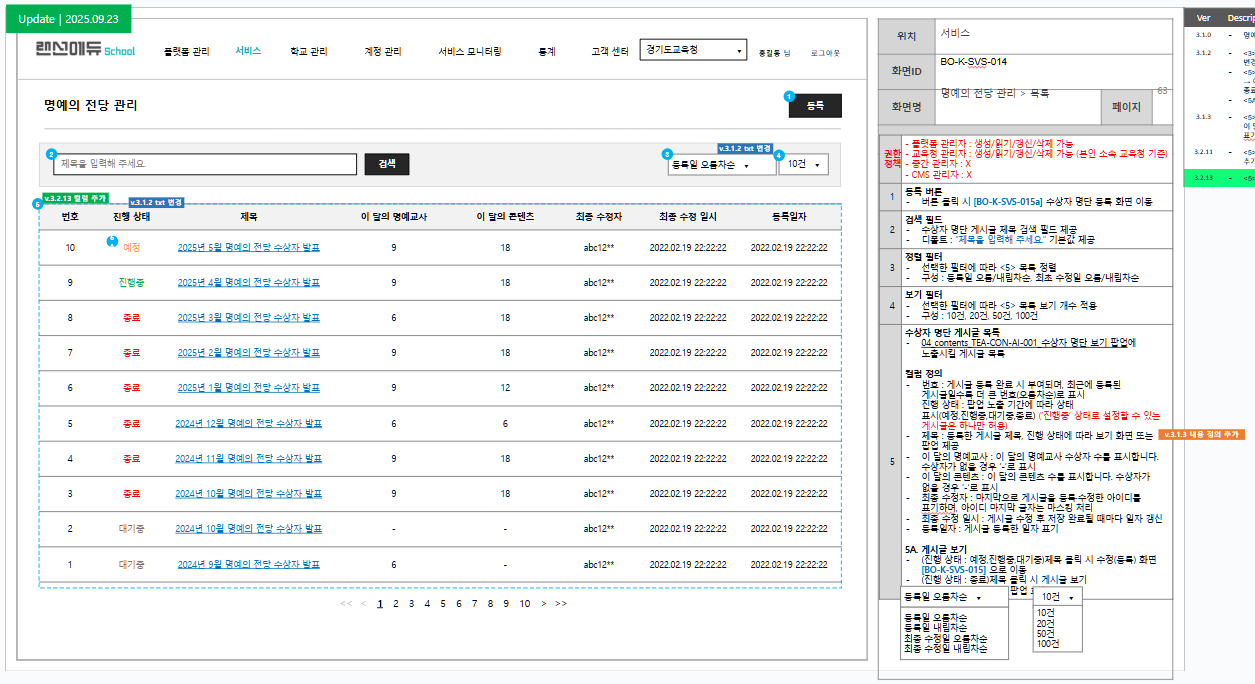 | 2025-09-24 04:48 | 김소원 | File Added: (2025-09-23)_KT LanEdu_플랫폼관리자_화면설계서_v.3.2.13.pptx | |