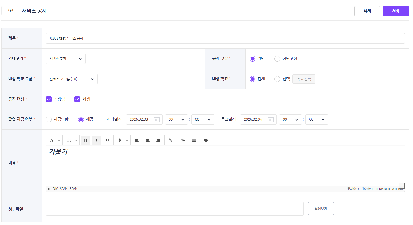 | Description | 플랫폼BO 서비스 공지 등록 시, BO에디터에서 텍스트 기울기 반영이 안되는 현상 *저장 시, FO에서는 기울기 반영되어 정상 노출 | ||||