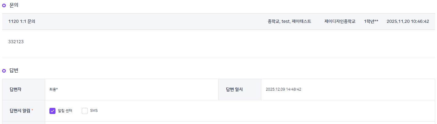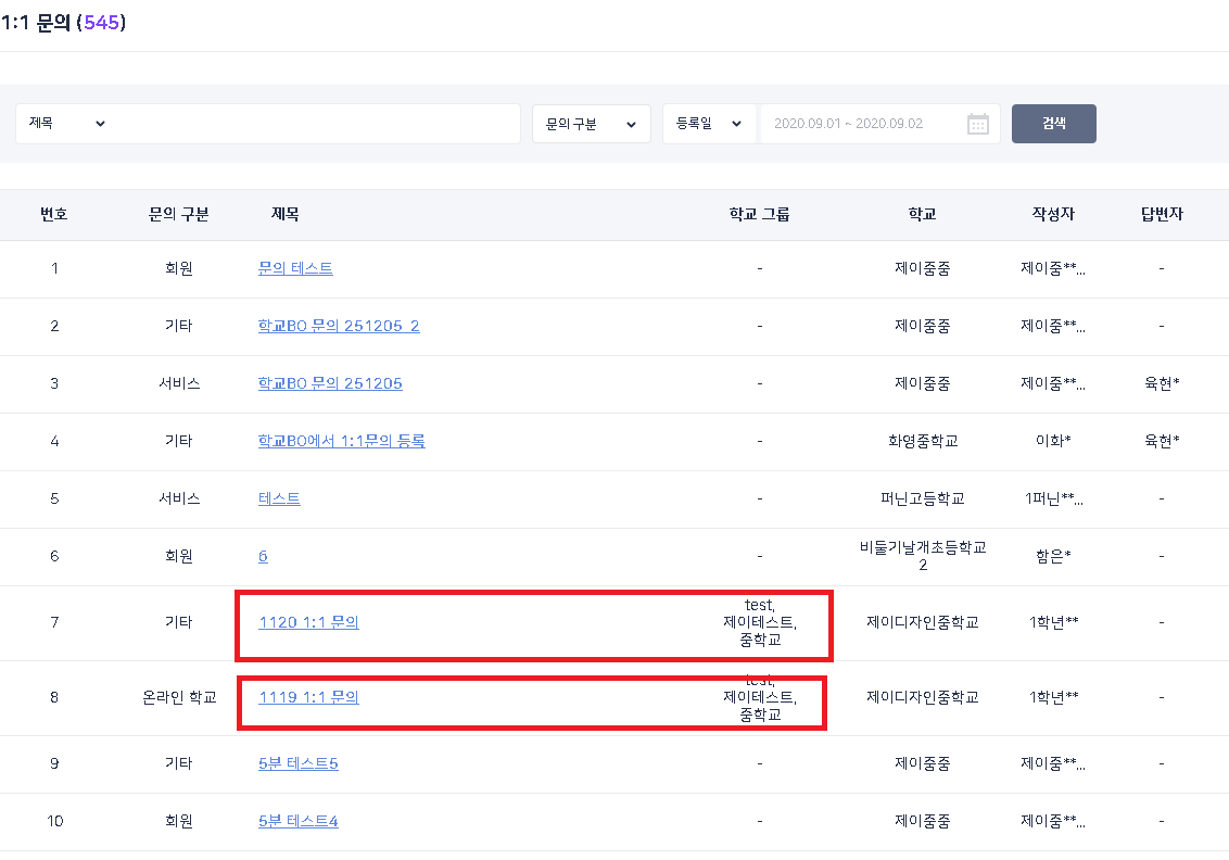 | Summary | 0001752: 플랫폼 BO - 고객센터 - 1:1문의 : 학교 그룹 등록한 게시물 상세 보기에서 구분자가 특수 문자로 표시되는 현상 | ||||
