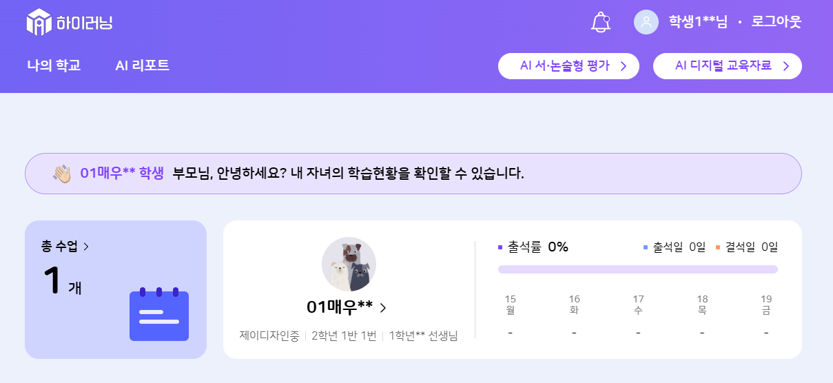 | Description | [암호화][FO[PC/모바일] 학부모 > 메인 > 대시보드 상단 > 교사명 | ||||