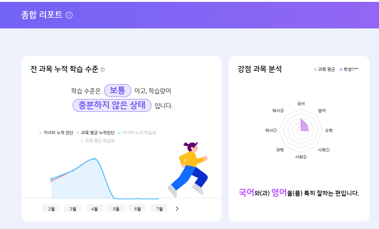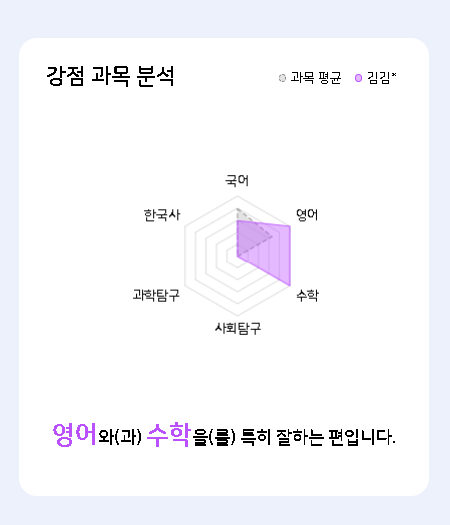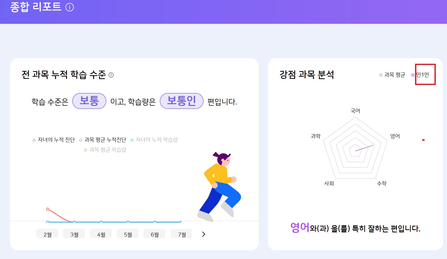| Description | [암호화][FO] 학부모 > 종합 리포트 > 강점 과목 분석 > 자녀명 | ||||