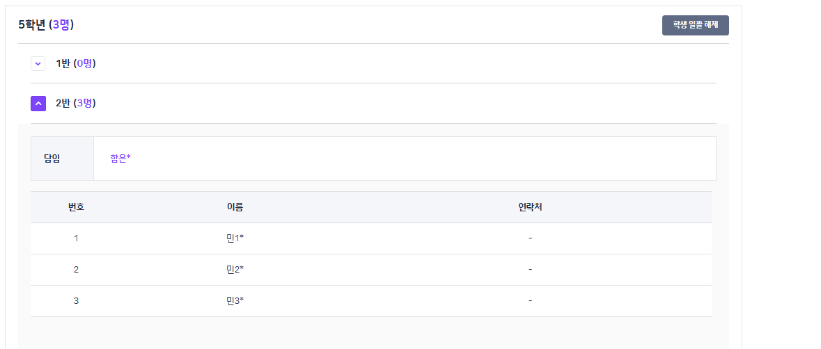 | Description | [암호화][학교BO] 학급관리 > 학생 배정 > 학생명 | ||||