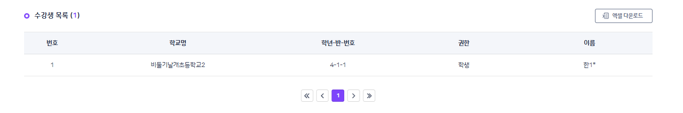 | Description | [암호화][학교BO] 나의 수업 관리 > 수업 관리 > 게시글 상세 > 수강생 목록 > 학생명 미노출 | ||||