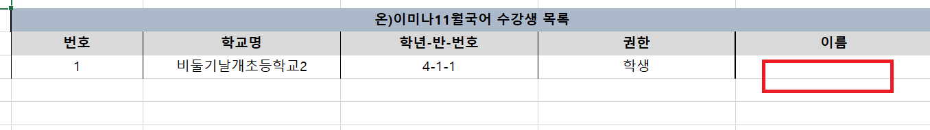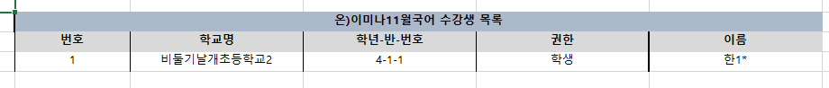 | Steps To Reproduce | 1. 학교 BO 로그인 2. 나의 수업 관리 > 수업 관리 > 게시글 상세 > 수강생 목록 > 엑셀 다운로드 > 학생명 미노출 | ||||