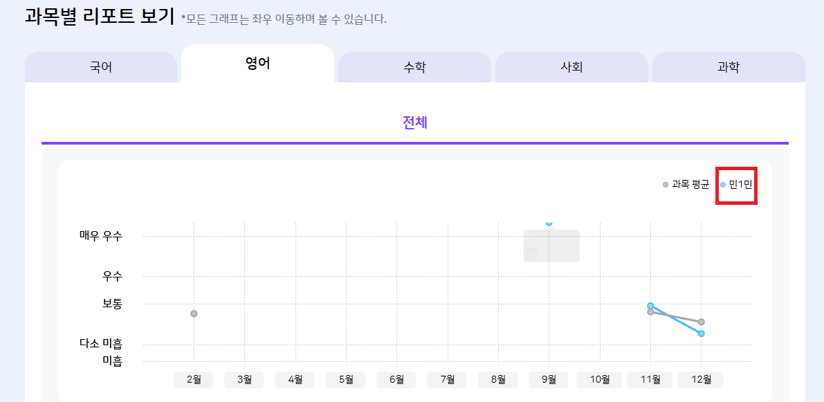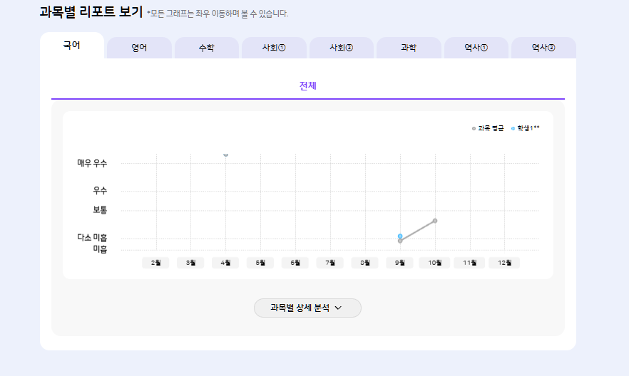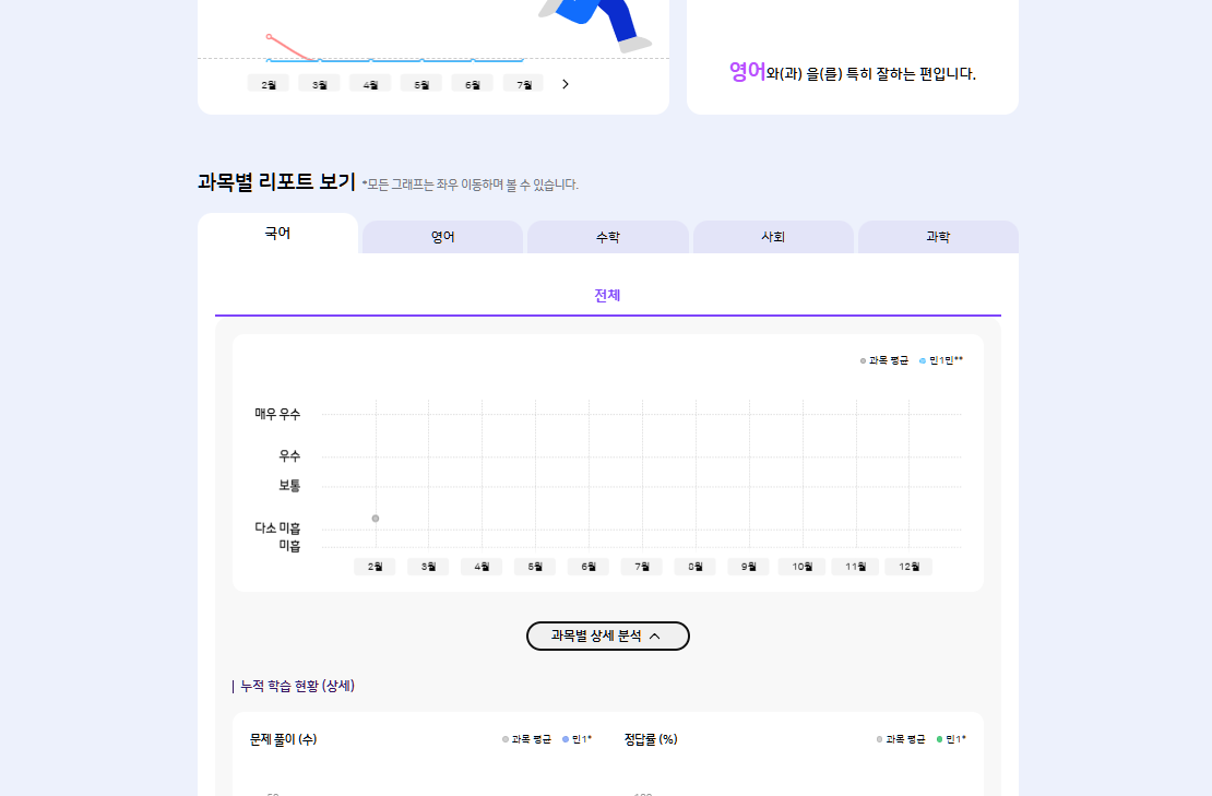 | Description | 학부모 > 종합 리포트 > 과목별 리포트 보기 > 자녀명 마스킹되지 않음 | ||||