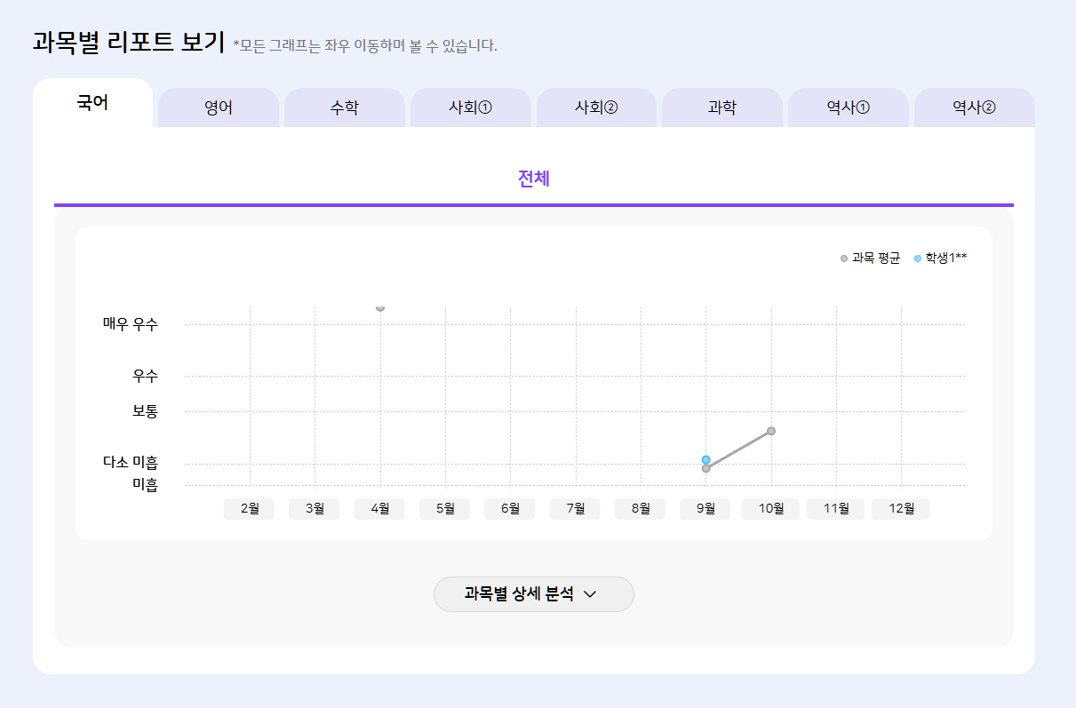 | Steps To Reproduce | 1. 학부모 로그인 2. 종합 리포트 > 과목별 리포트 보기 > 자녀명 | ||||