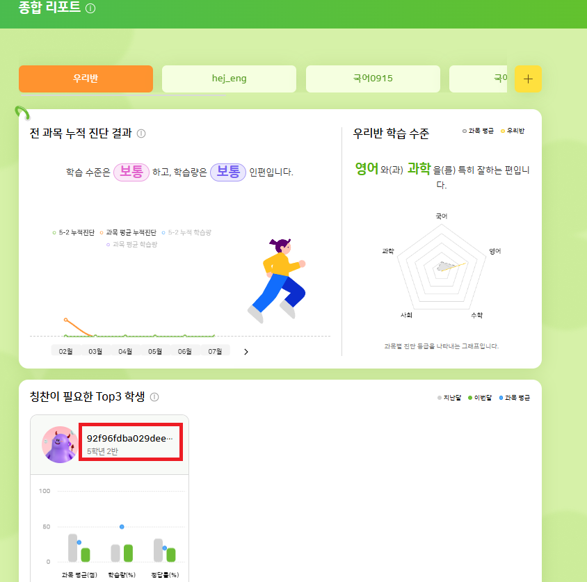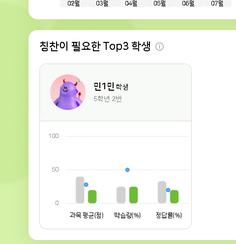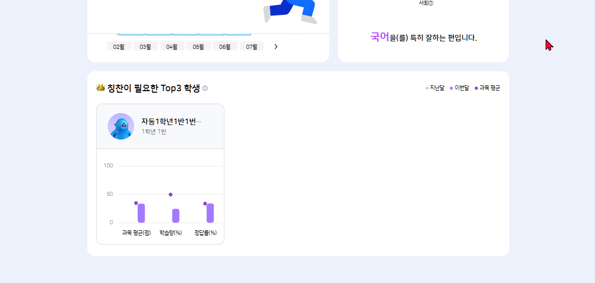 | Description | [암호화][FO] 종합 리포트 > 칭찬이 필요한 Top3 학생 > 학생명 | ||||