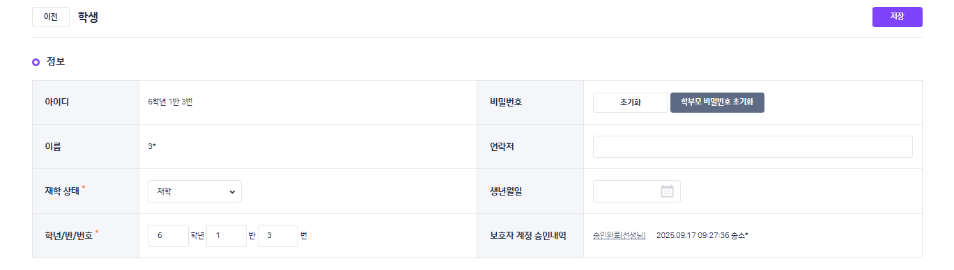 | Description | [암호화][학교BO] 계정 관리 > 학생 > 학생 상세 > 보호자 계정 승인내역 | ||||