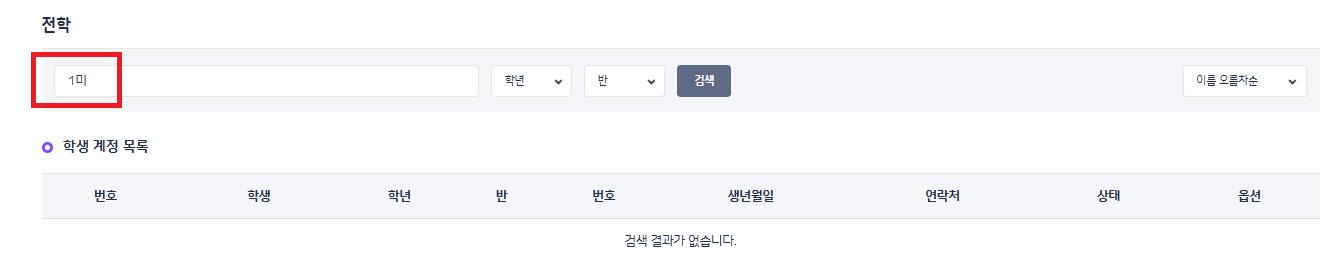 | Description | [암호화][학교BO] 계정 관리 > 전학 > 학생명 검색해도 '학생 계정 목록'에 미노출 | ||||