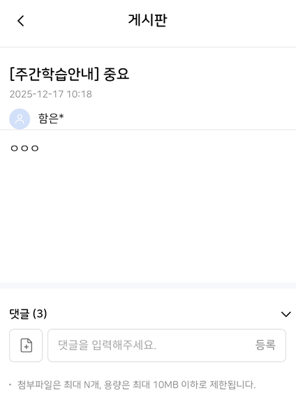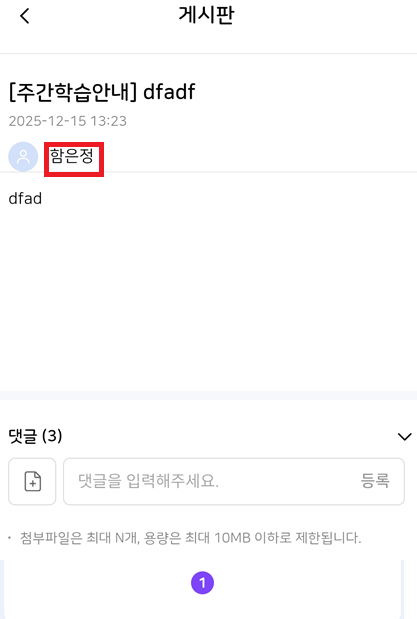 [암호화][FO][모바일] 교사 : 나의 수업 > 게시판 > 게시글 상세 > 작성자 *상용/TB 공통 이슈 |