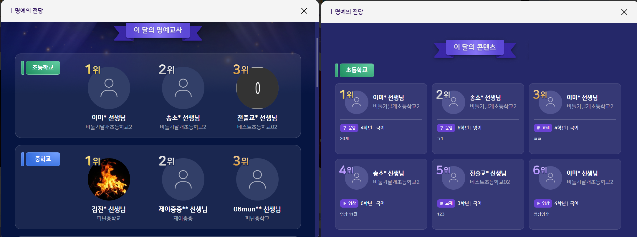 | Description | [암호화][FO] 명예의 전당 팝업 > 교사명 | ||||
