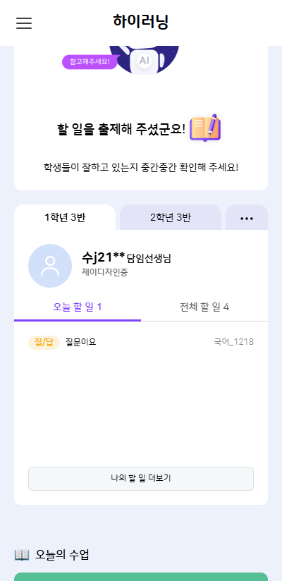 | Description | [암호화][FO][모바일] 교사 : 메인 대시보드 교사명 평문 노출 *기대결과 : 교사명 마스킹 처리 | ||||
