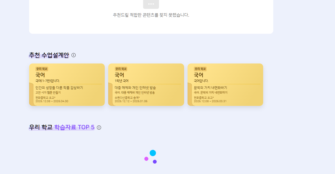 | Steps To Reproduce | 1. 교사 로그인 2. 학습 콘텐츠 > 추천 콘텐츠 > 추천 수업설계안 > 교사명 | ||||