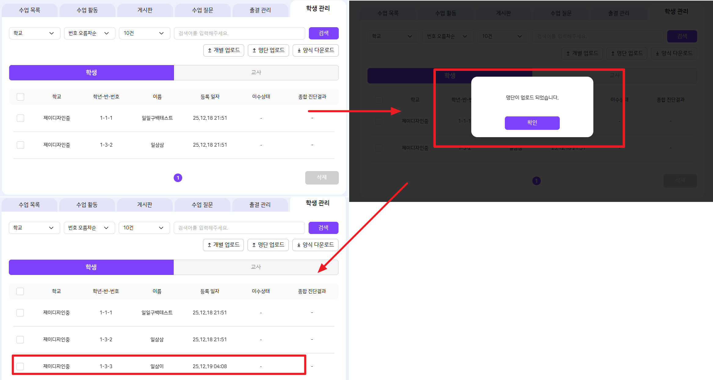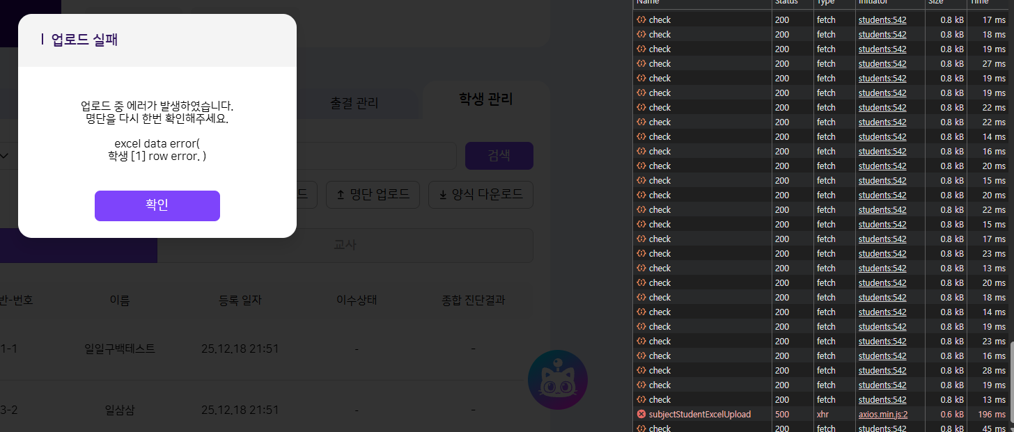 | Description | 직접등록 수업에서 학생 명단 업로드 시 에러 발생되는 현상입니다. | ||||