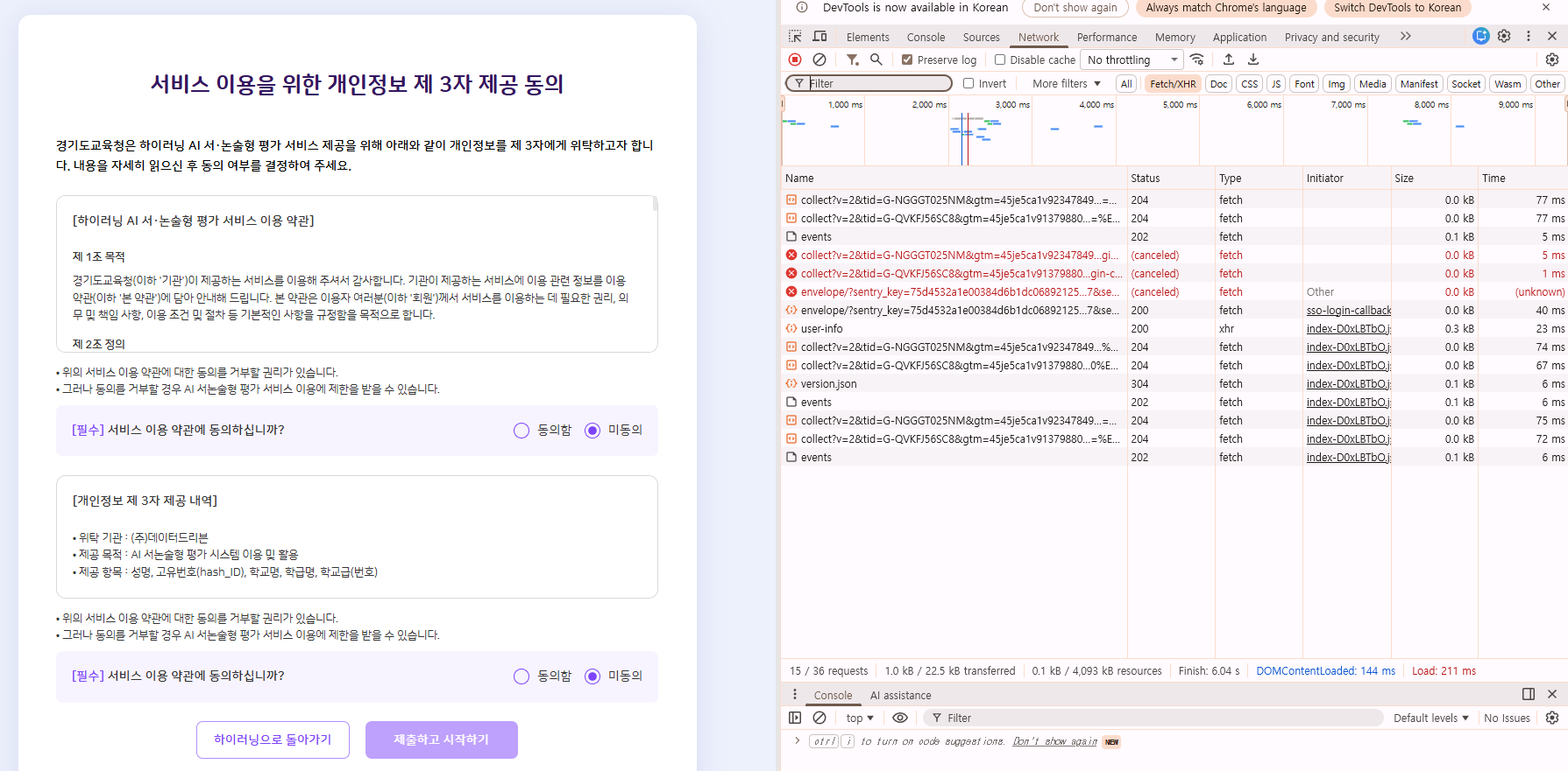 | Description | AI 서 논술형 비연동 계정으로 해당 페이지 진입 시 에러 및 버튼 비활성 ㄴ서 논술형 신규 연동 불가 | ||||