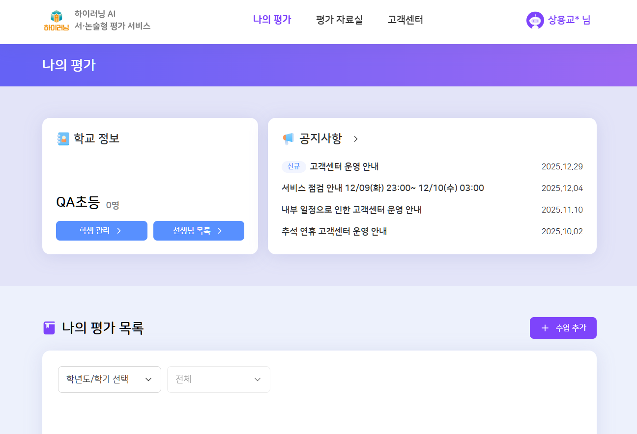 | Steps To Reproduce | 1. 서논술 비연동 계정으로 로그인 2. 우측 상단 AI 서 논술형 평가 버튼 클릭 3. 연동시도 | ||||