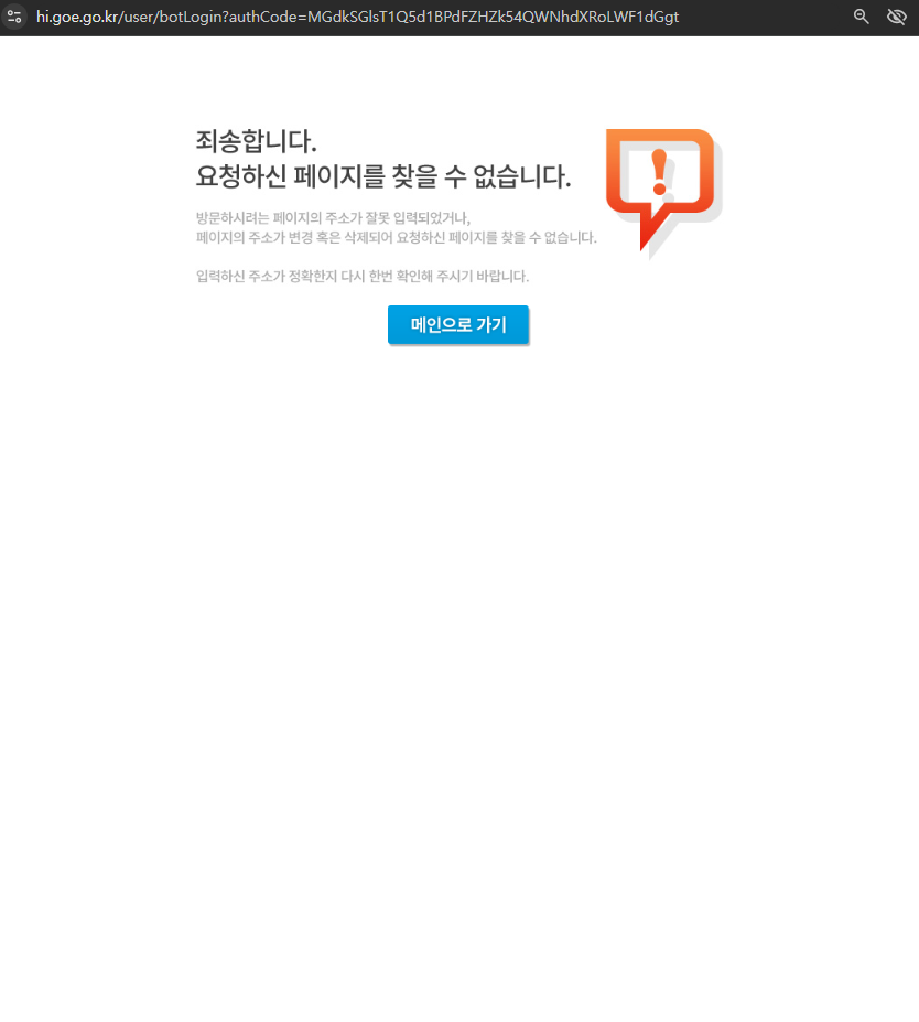 학년도 전환 후 VOC 확인 시 해당 현상이 재현되어 리오픈합니다. - 연동된 계정의 학급, 반, 번호 정보가 없을 경우 : 웹페이지를 찾을 수 없음. 노출 - 신규 생성 계정 연동 시도 : 현이슈 - 원패스계정1개에 중복로그인 > 웹페이지를 찾을 수 없음. 1. 학생A 로그인 - 원패스계정(stdtest02)연동 2. 학생A 계정의 학년, 반, 번호 제외 3. 인트로 - 원패스 로그인(stdtest02) "웹페이지를 찾을 수 없음" 확인 4. 학생B 로그인 - 원패스 계정(stdtest02)연동 5. 인트로 - 원패스 로그인(stdtest02) "웹페이지를 찾을 수 없음" 확인 6. 학생A 계정의 학년, 반, 번호 추가 7. 인트로 - 원패스 로그인(stdtest02) "웹페이지를 찾을 수 없음" 확인 8. 학생A 로그인 - 원패스 연동 해제 9. 인트로 - 원패스 로그인(stdtest02) : 중복 연동 제거로 정상 로그인 확인 |