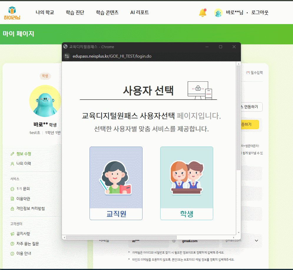 | Steps To Reproduce | 1. A학생 디지털원패스 연동 stdtest03 2. A학생 '미사용' 상태로 변경 3. B학생 디지털원패스 연동 - 동일 계정( stdtest03 ) 4. FO에서 디지털원패스 로그인 시도 | ||||