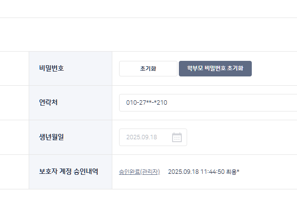 | Description | [마스킹][학교BO] 계정 관리 > 학생 > 학생 상세 > 보호자 계정 승인내역 | ||||