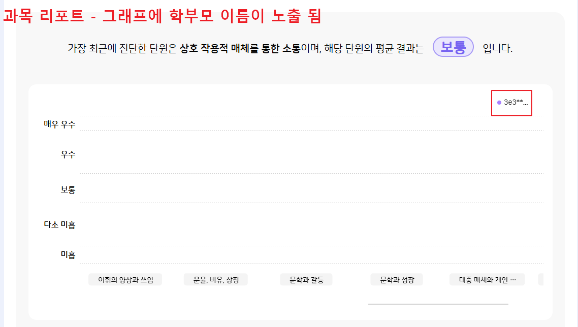 Description학부모 > 과목 리포트에서 항목 별 그래프에 학부모 이름이 노출되는 현상입니다.