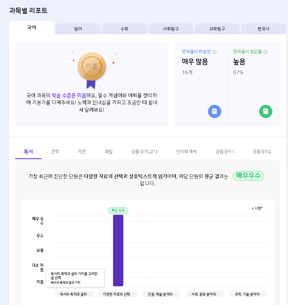 | Steps To Reproduce | 1. 학부모 로그인 2. AI리포트 > 과목 리포트 진입 3. 리포트 내 그래프 영역 확인 | ||||