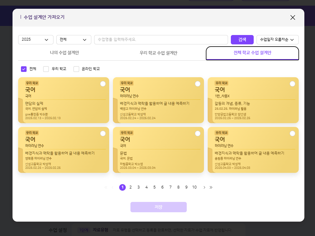 | Description | [마스킹][교사] 나의 학교 > 과목 상세 > 수업 설계 > 수업 설계안 가져오기 | ||||