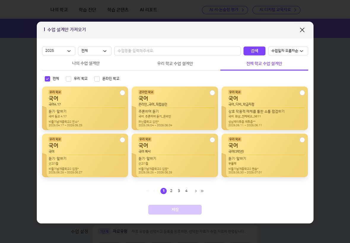 | Description | [마스킹][교사] 나의 학교 > 과목 상세 > 수업 설계 > 수업 설계안 가져오기 | ||||