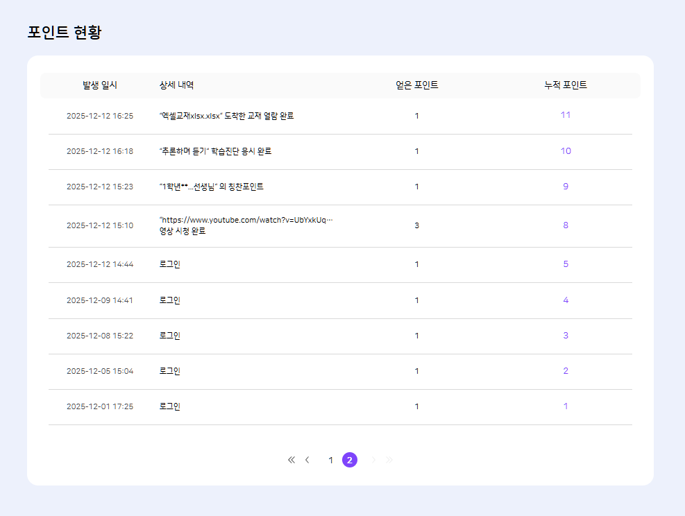 | Description | [마스킹][학생] 나의 프로필 레벨 > 포인트 현황 - 교사 이름 | ||||