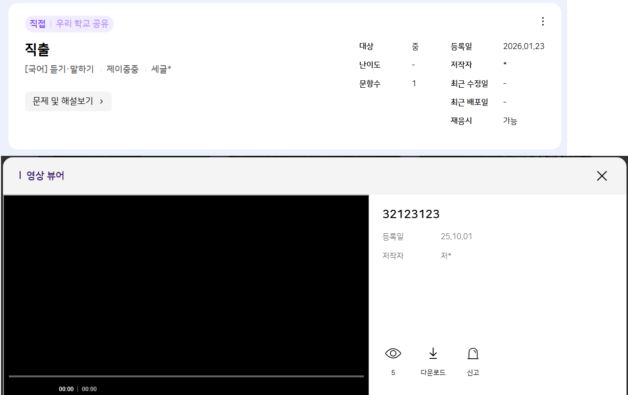 현재 저작자가 한 글자로 등록된 콘텐츠가 총 몇 개 콘텐츠인지 확인 부탁드립니다. (테스트 학교 제외, 현황 파악 용도) |