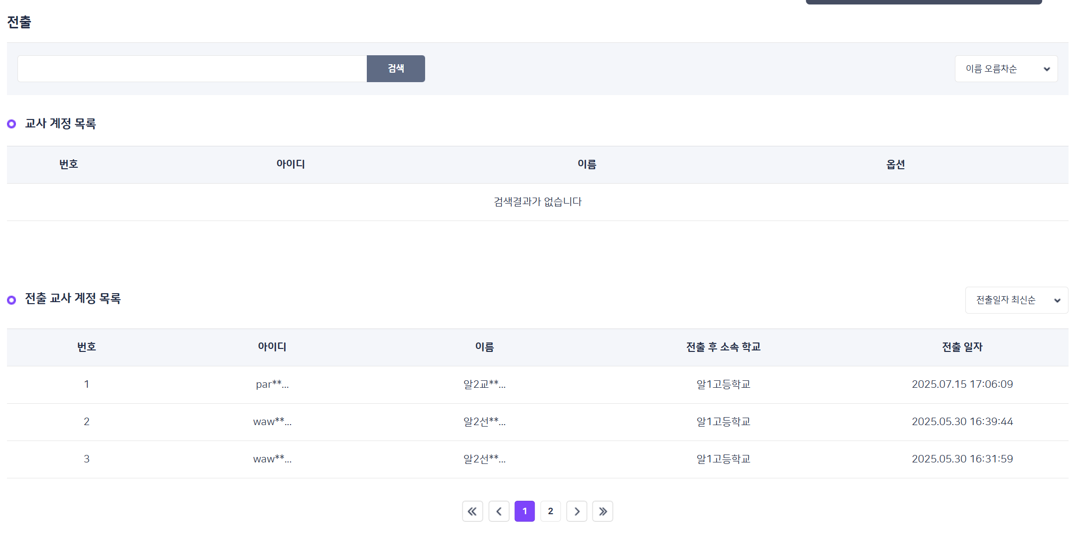 | Description | [에디터][학교BO] 계정 관리 > 전출 - 교사 계정 목록 영역 UI 오노출 | ||||