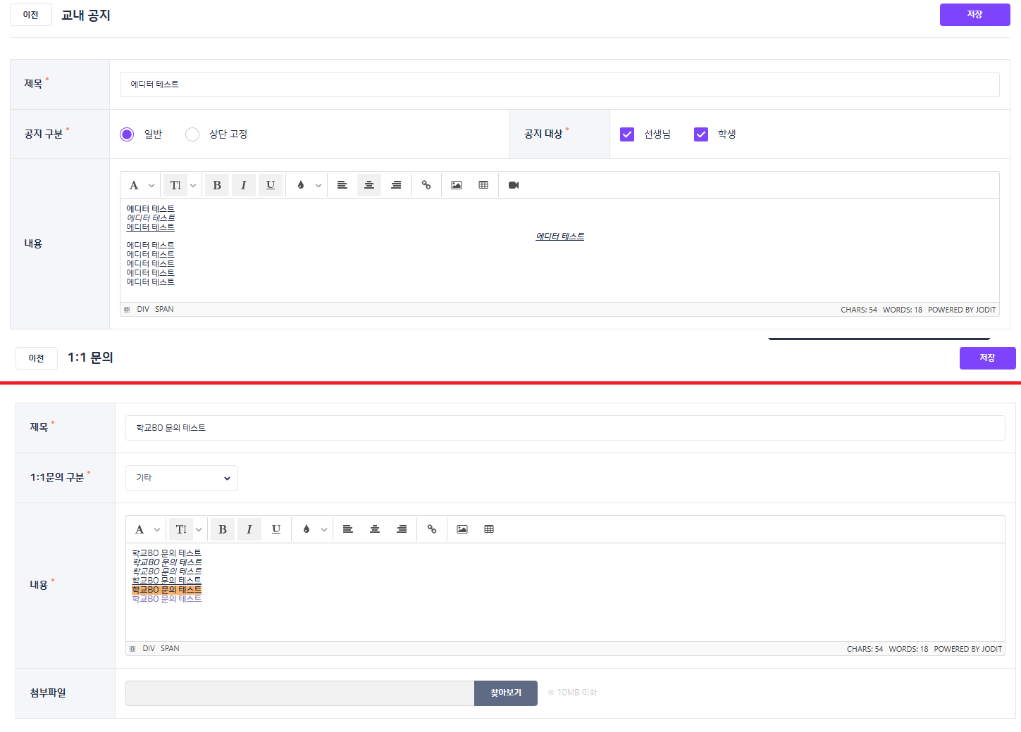 | Description | [에디터][학교BO] 학교 관리 > 교내 공지 - 공지사항 내 기울기 미적용 *반영되는 FO에는 정상적으로 적용 + 고객 센터 - 1:1 문의사항 - 문의하기에도 해당 이슈 동일하여 추가하겠습니다. | ||||