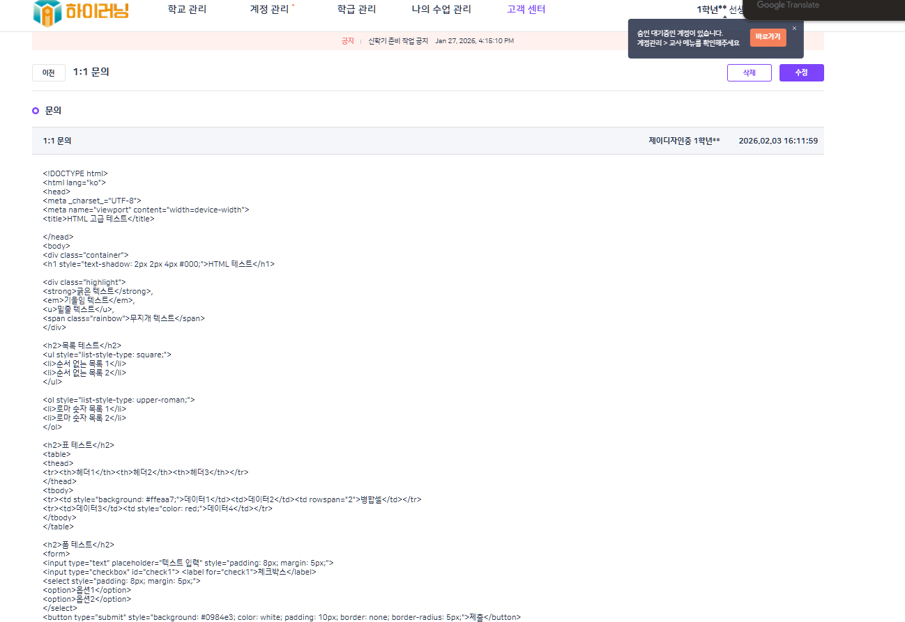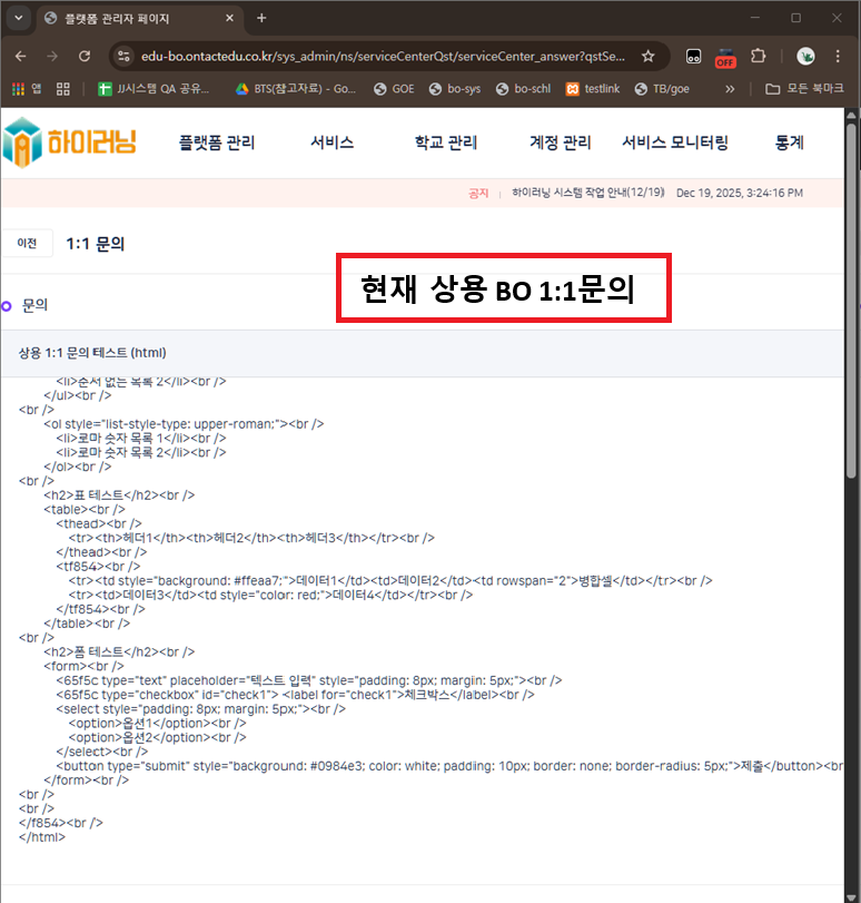 | Description | [에디터][학교BO] 고객 센터 > 1:1 문의 - 에디터에 html 양식 삽입 가능 | ||||