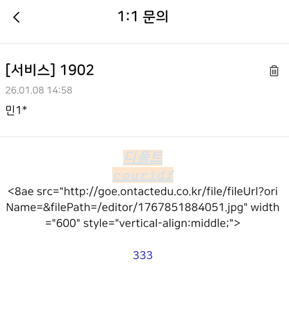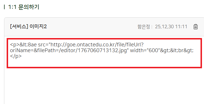 1:1 문의하기에서 글자, 이미지, 링크 모두 등록하면 이미지가 태그 처리되서 노출되는 현상 발생하여