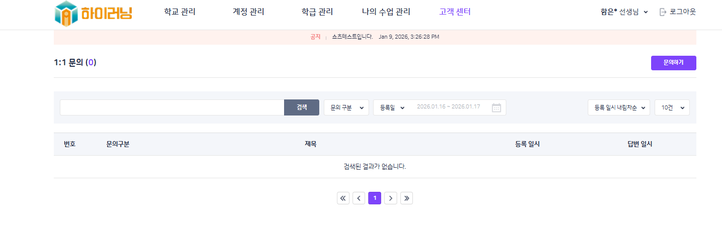 | Steps To Reproduce | 1. 학교BO 로그인 2. 고객 센터 > 1:1 문의 > 목록 | ||||
