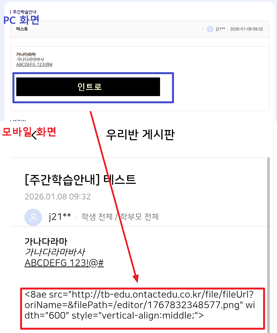 Steps To Reproduce1. 나의 학교 > 우리반 게시판 > 등록