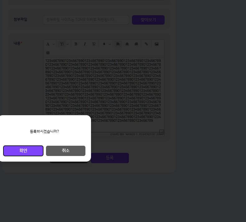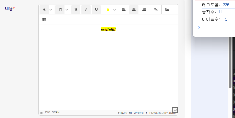 순수 텍스트만 계산하게 될경우 첨부 위치의 화면(jodit ui) 에도 동일하게 계산될까요? 확인 부탁드립니다. |