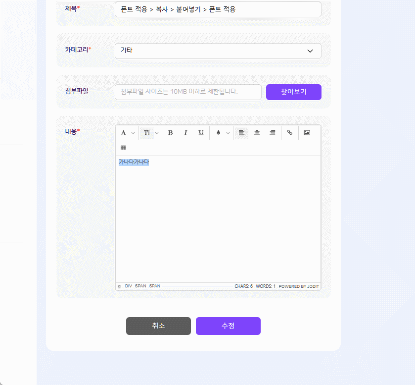 * 폰트 적용 후 등록 시도 시 텍스트가 삭제되는 현상 |