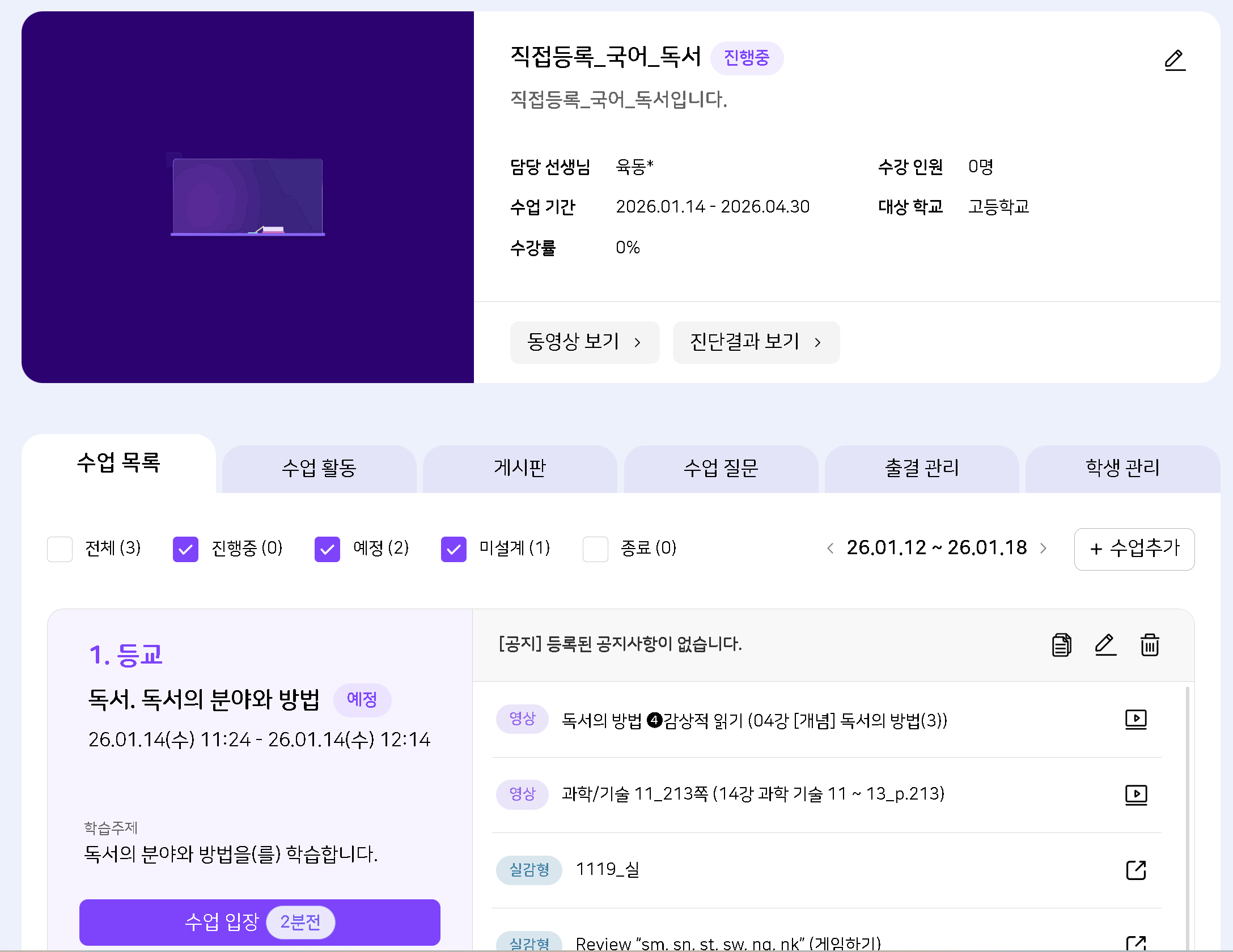 | Description | [리허설][FO]복사 받은 수업을 학생이 0명인 과목에서 설계 시도시 설계 불가 팝업 노출 | ||||