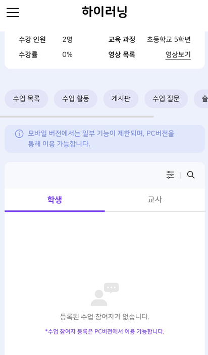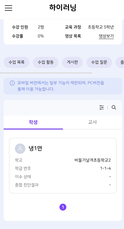 | Steps To Reproduce | 1. 교사 로그인 2. 직접등록 과목 생성 3. 학생 추가 4. 모바일에서 나의 수업 > 학생 관리 확인 | ||||