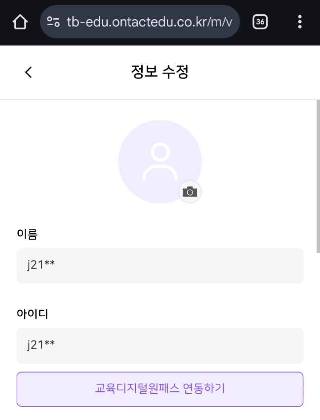 | Description | [마스킹][모바일] 교사 : 메인 > 마이페이지 > 정보 수정 > 이름/아이디 | ||||