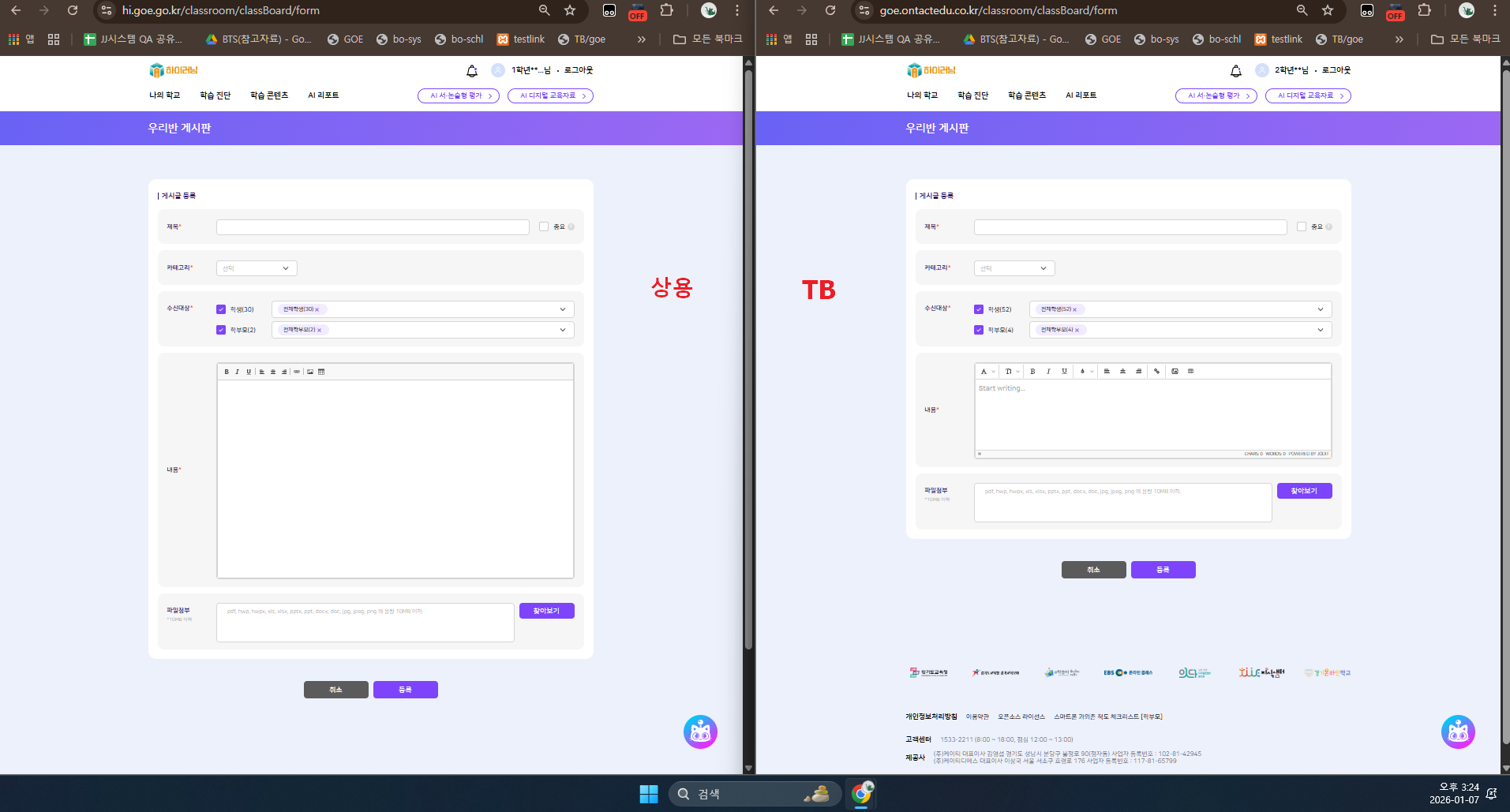 | Steps To Reproduce | 1. 교사 > 우리반 게시판 2. 등록 3. 내용 제공 영역 체크 | ||||
