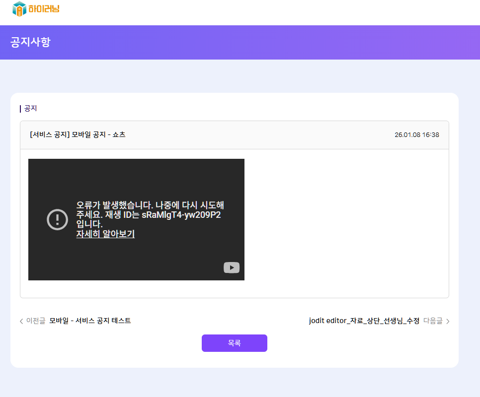 | Description | [에디터][FO] 공지사항 유튜브 영상 등록 시 쇼츠를 등록할 경우 오류 발생 | ||||