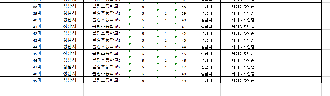 상용 전환 후 전학 학생 50미 졸업반 엑셀에 미노출 확인 |