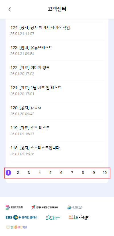 3. 공지사항 목록의 페이지네이션 UI 확인