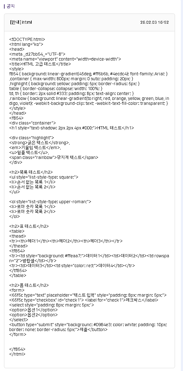 | Description | [에디터][플랫폼BO] 붙여넣기 한 HTML 내용 일부는 적용/일부는 비적용되는 현상 내용 작성 후 게시물 상세보기시 일부는 테그 형식으로 노출, 일부는 적용되어(표, 버튼 등) 노출되는 현상입니다. | ||||