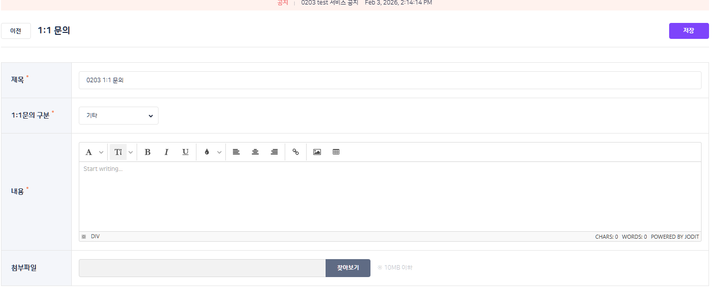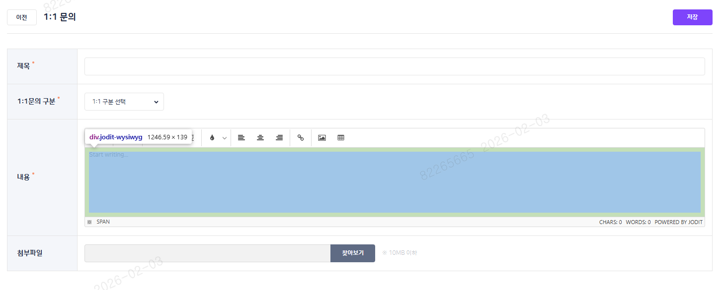 | Steps To Reproduce | 1. 학교BO > 고객센터 > 1:1 문의 2. 문의 등록 3. 내용 영역 확인 | ||||